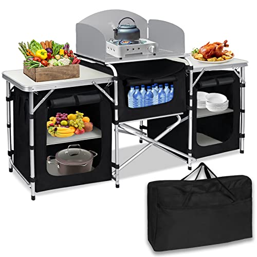 KESSER® Campingkök | inkl. bärväska | campingskåp | med aluminiumram | resekök | kökslåda | tältskåp | utomhus camping kök |