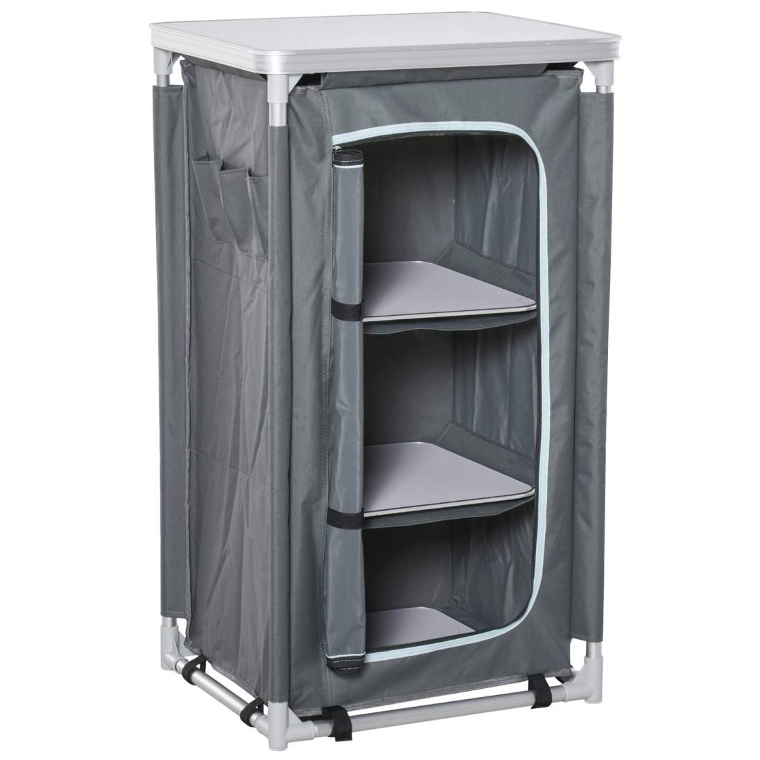 Campingskåp hopfällbar kökslåda med dragkedja, portabelt campingkök med bänkskiva, 3 hyllor, bärväska Oxford mörkgrå 60 x 50 x 9