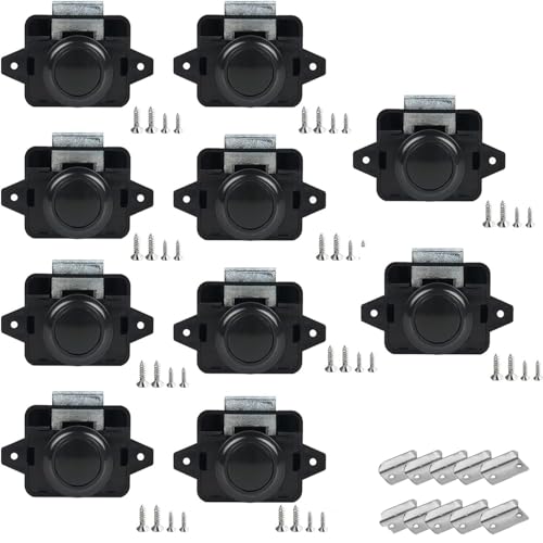 TOOSOAR 10 stycken tryckknappslås, dörrlåslås, 14–16 mm möbellås, nyckelfritt husbilslås för husbilar, yachter, båtar, husbilar, campingskåp, husvagn (svart)