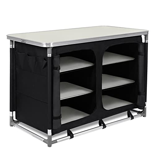 LARS360 Campingkök, vikbart campingskåp med aluminiumram, förvaringsfack, bordsskiva, inkl. bärväska, för picknick utomhus, camping utomhus, fest (6 fack och 1 bord)
