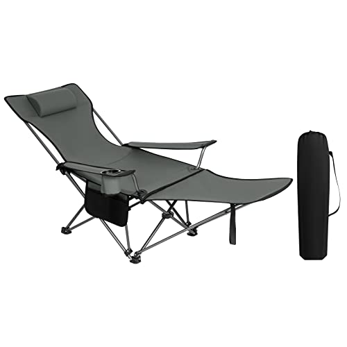 COSTWAY Campingstol med avtagbart fotstöd, vikbar fiskstol med justerbart ryggstöd, nackstöd, mugghållare och sidoficka, fällstol, vikstol för camping, fiske (grå)
