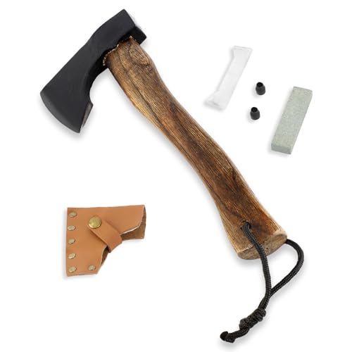 Aicharynic Överlevnad yxa & campingyxa – utomhus fritidshandduk liten för camping, överlevnad, jakt, vandring, trädgård – med huvudficka, trähandtag
