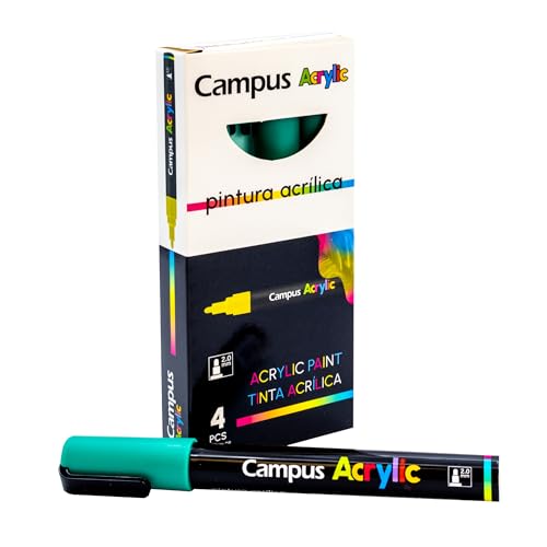Campus Akrylmarkörer, 2 mm paket med runda spetspennor, vattenbaserade, icke-permanenta färgmarkörer, ogenomskinliga och snabbtorkande akrylmarkörer (grön)