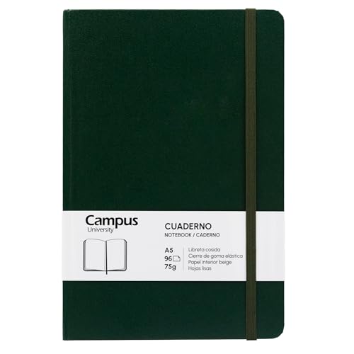 Campus A5-anteckningsbok, Bullet Journal med släta blad, inbunden anteckningsbok med 96 ark på 75 g, elastisk stängning, ficka och bokmärke (A5, slät, mörkgrön)