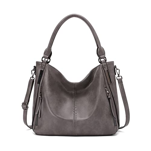 FANDARE Stor damhandväska av PU-läder, vattentät handväska för shopping, resor, kontor, campus, Grå b, L, Elegant