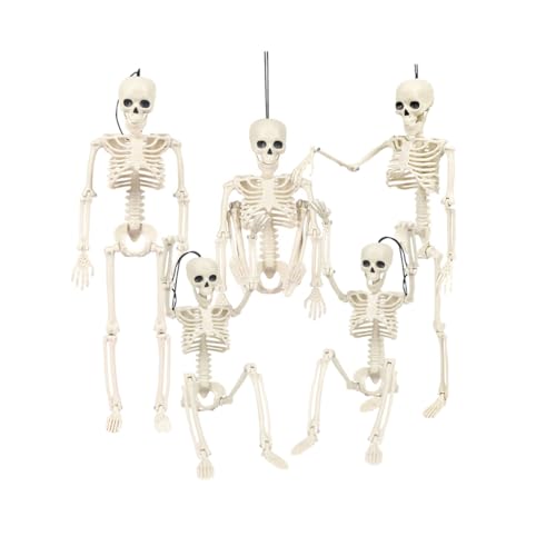 5pcs Halloween Posable Skeleton, With Movable Joints, 40cm(16in) Plastic, Can Sit, Lie Down, Stand, and Hang, for Halloween Outdoor Indoor Garden House Patio Decoration