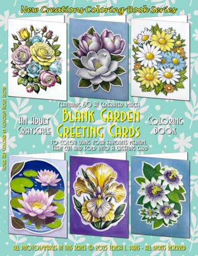 New Creations Coloring Book Series: Blank Garden Greetings: An adult grayscale coloring book (coloring book for grownups) featuring A.I. generated ... can then cut and fold into a greeting card.