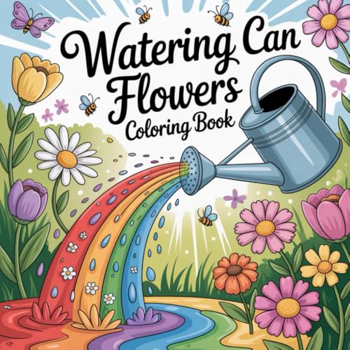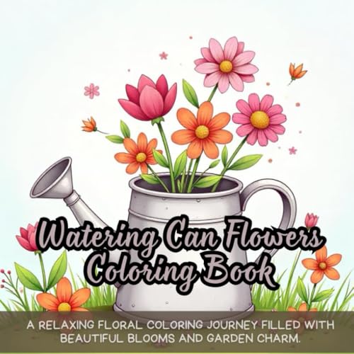 Watering Can Flowers Coloring Book: Floral coloring book for adults, garden elements coloring book, watering can theme coloring book, detailed ... coloring book, backyard plants coloring book