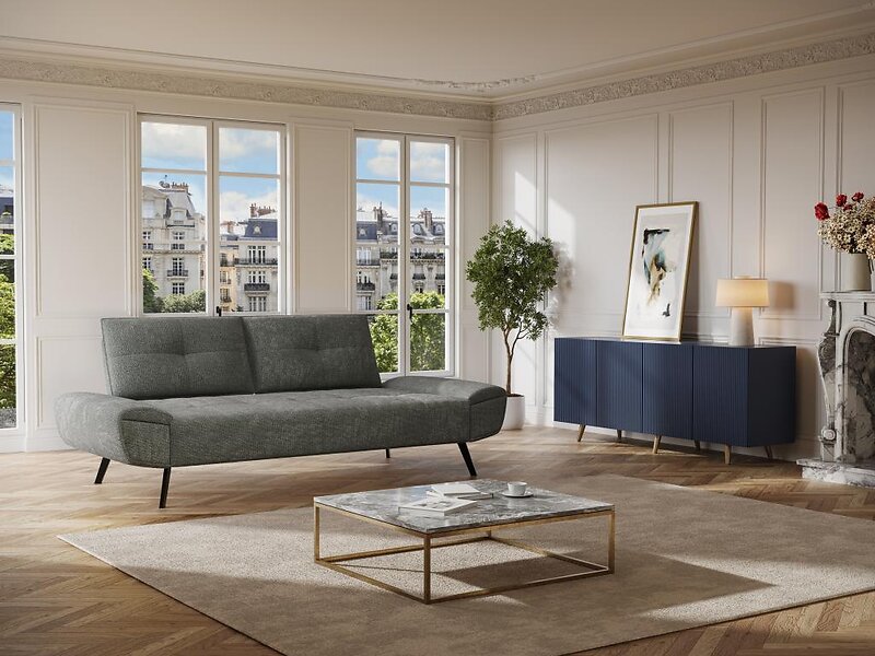 Vente Unique Canapé 3 places convertible en tissu CANETTI Gris