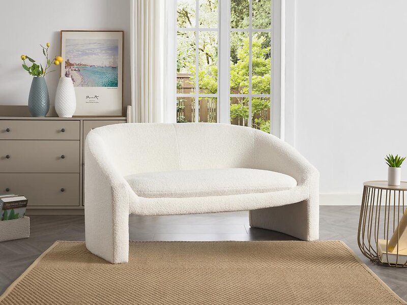 Vente Unique Canapé 2 places en tissu bouclette blanc OSSANA