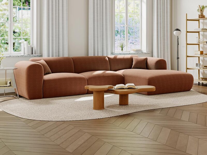 Vente Unique Grand canapé d'angle droit en tissu texturé terracotta POGNI de Maison Céphy