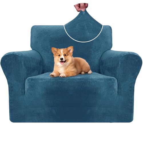 CYCMACO Housse De Canapé Velours 1 Place, Housse Fauteuil Extensible Avec Accoudoirs, Universelle Housse Canape Moderne, Housse Canapé Anti Poils Animaux, Sofa Cover Antidérapante, Bleu Paon