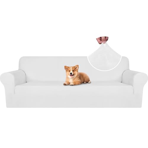 CYCMACO Housse De Canapé Velours 4 Places, Housse Canapé Extensible Avec Accoudoirs, Universelle Housse Canape Moderne, Housse Canapé Anti Poils Animaux, Sofa Cover Antidérapante, Blanc