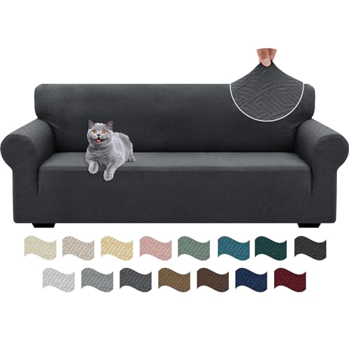 Ystyle Extensible Housse Canapé 3 Places, Universelle Housse De Canapé Avec Accoudoirs, Housse Protection Canapém, Sofa Cover Antidérapante, Couvre Canapé Pour Chiens Chats Animaux, Gris Foncé