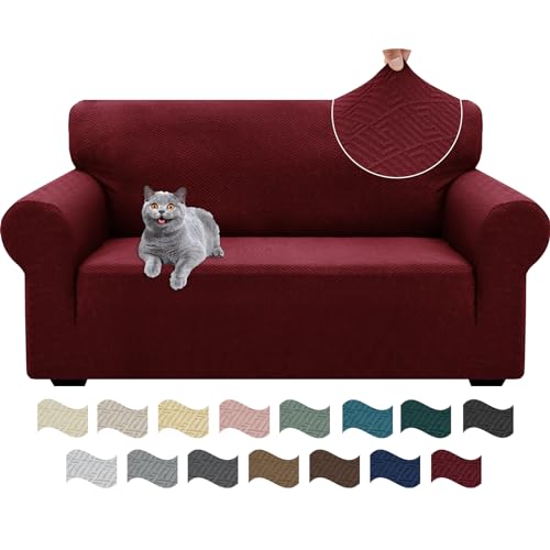 Ystyle Extensible Housse Canapé 2 Places, Universelle Housse De Canapé Avec Accoudoirs, Housse Protection Canapém, Sofa Cover Antidérapante, Couvre Canapé Pour Chiens Chats Animaux, Bordeaux