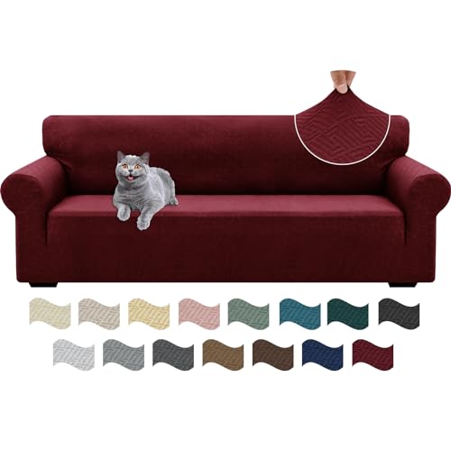 Ystyle Extensible Housse Canapé 4 Places, Universelle Housse De Canapé Avec Accoudoirs, Housse Protection Canapém, Sofa Cover Antidérapante, Couvre Canapé Pour Chiens Chats Animaux, Bordeaux