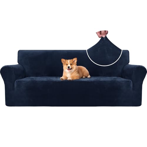 CYCMACO Housse De Canapé Velours 3 Places, Housse Canapé Extensible Avec Accoudoirs, Universelle Housse Canape Moderne, Housse Canapé Anti Poils Animaux, Sofa Cover Antidérapante, Bleu Foncé