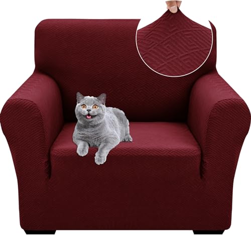 Ystyle Extensible Housse Canapé 1 Place, Universelle Housse De Fauteuil Avec Accoudoirs, Housse Protection Canapém, Sofa Cover Antidérapante, Couvre Canapé Pour Chiens Chats Animaux,Bordeaux