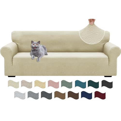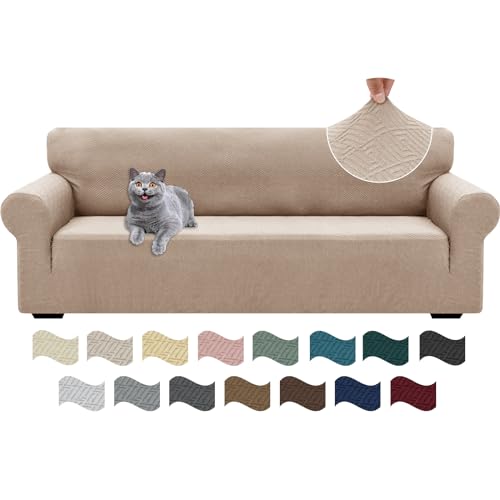 Ystyle Extensible Housse Canapé 4 Places, Universelle Housse De Canapé Avec Accoudoirs, Housse Protection Canapém, Sofa Cover Antidérapante, Couvre Canapé Pour Chiens Chats Animaux, Beige Clair