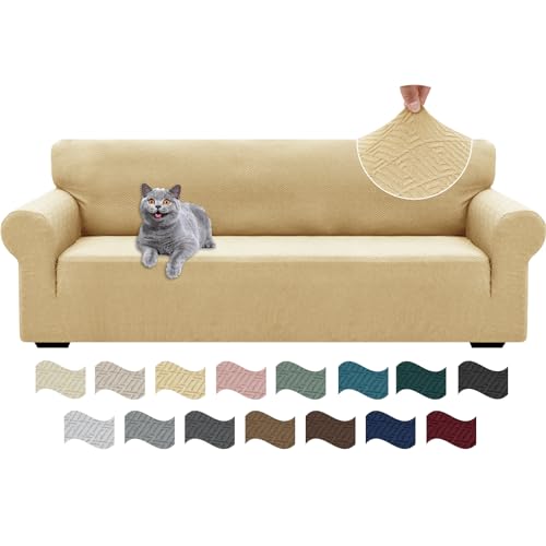 Ystyle Extensible Housse Canapé 4 Places, Universelle Housse De Canapé Avec Accoudoirs, Housse Protection Canapém, Sofa Cover Antidérapante, Couvre Canapé Pour Chiens Chats Animaux, Beige Jaune