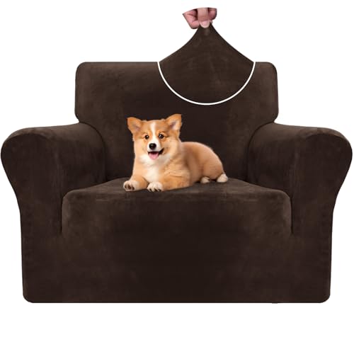 CYCMACO Housse De Canapé Velours 1 Place, Housse Fauteuil Extensible Avec Accoudoirs, Universelle Housse Canape Moderne, Housse Canapé Anti Poils Animaux, Sofa Cover Antidérapante, Café