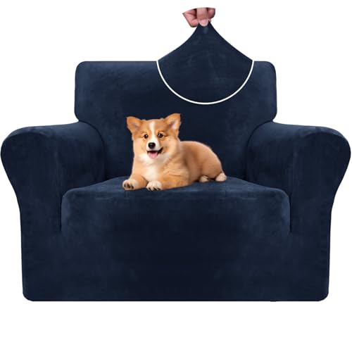 CYCMACO Housse De Canapé Velours 1 Place, Housse Fauteuil Extensible Avec Accoudoirs, Universelle Housse Canape Moderne, Housse Canapé Anti Poils Animaux, Sofa Cover Antidérapante, Bleu Foncé