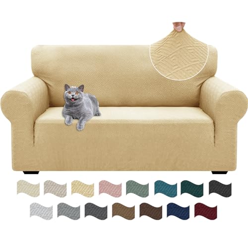 Ystyle Extensible Housse Canapé 2 Places, Universelle Housse De Canapé Avec Accoudoirs, Housse Protection Canapém, Sofa Cover Antidérapante, Couvre Canapé Pour Chiens Chats Animaux, Beige Jaune