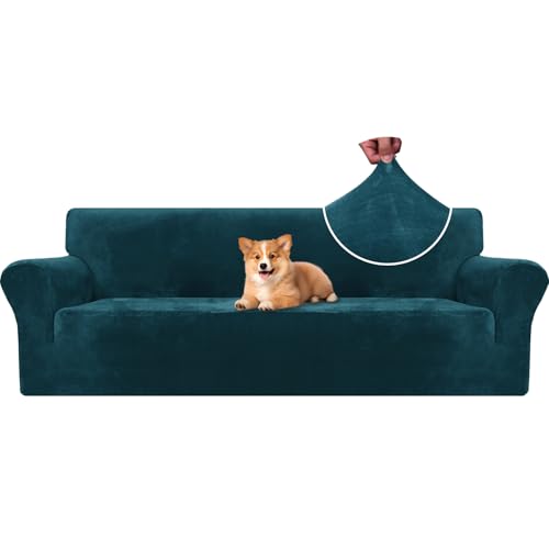 CYCMACO Housse De Canapé Velours 4 Places, Housse Canapé Extensible Avec Accoudoirs, Universelle Housse Canape Moderne, Housse Canapé Anti Poils Animaux, Sofa Cover Antidérapante, Bleu Paon