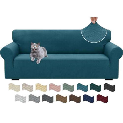 Ystyle Extensible Housse Canapé 4 Places, Universelle Housse De Canapé Avec Accoudoirs, Housse Protection Canapém, Sofa Cover Antidérapante, Couvre Canapé Pour Chiens Chats Animaux, Bleu Paon