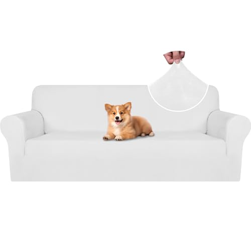 CYCMACO Housse De Canapé Velours 3 Places, Housse Canapé Extensible Avec Accoudoirs, Universelle Housse Canape Moderne, Housse Canapé Anti Poils Animaux, Sofa Cover Antidérapante, Blanc