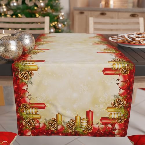 PETTI Artigiani Italiani - Julbordsduk Rektangulär Natalizio Köksdesign Ljus X24-sits (140x450cm) 100% Tillverkad i Italien