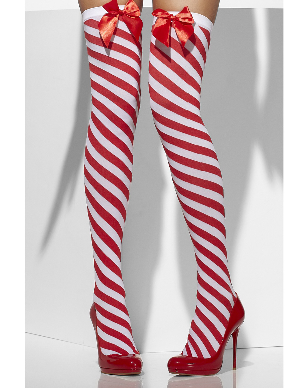 Candy Cane - Röda och Vita Strumpor med Rosetter