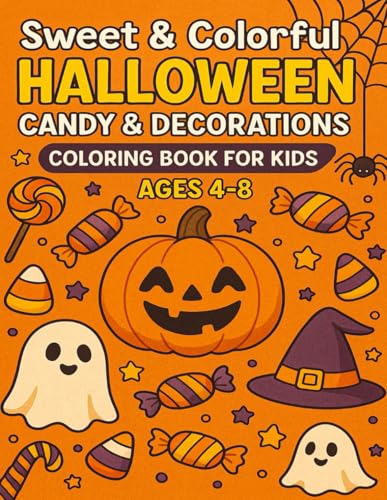 Sweet & Colorful Halloween Candy & Decorations Coloring Book for Kids Ages 4-8: A Halloween Coloring Collection of Delicious Treats and Magical Objects