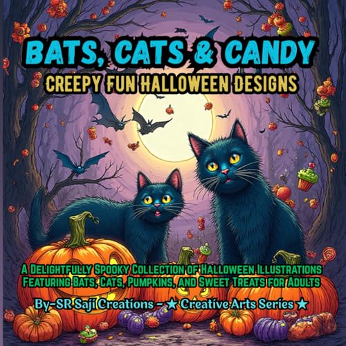 Bats, Cats & Candy: Creepy Fun Halloween Designs: A Delightfully Spooky Collection of Halloween Illustrations Featuring Bats, Cats, Pumpkins, and Sweet Treats for Adults