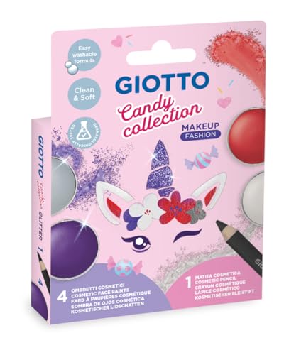 Giotto Make Up Candy Collection 4 kapslar 5 ml mode, lila metallisk, vit, silver, 1 x röd + 1 svart penna, F476800