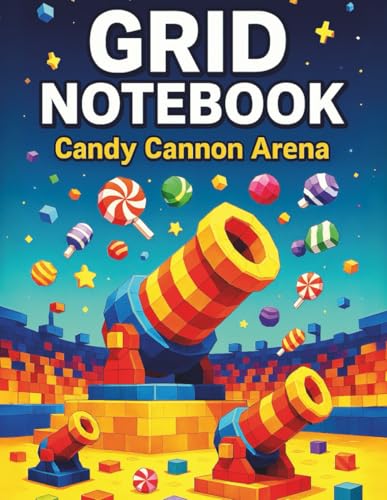 Grid Notebook – Candy Cannon Arena: Sweet voxel candy battle design squared paper, 50 pages