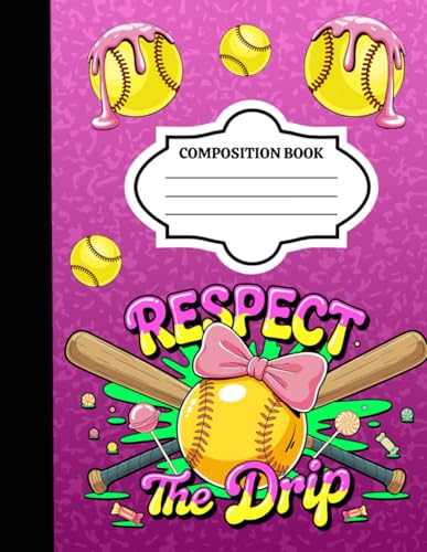 Respect the Drip – Softball Notebook Pink Candy Retro: Fun and Girly Composition Notebook with Candy and Bow Design | 8.5 x 11 | Wide Ruled | 100 Pages