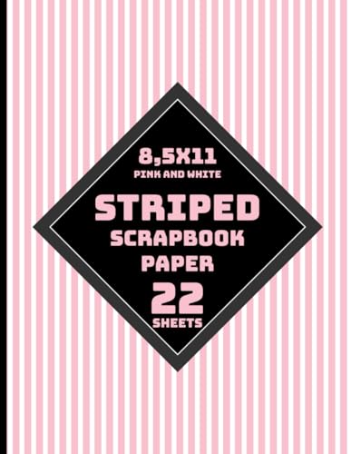 Pink and White Striped Scrapbook Paper: Vertical Stripes Candy Cane Design for Various Crafts, Mixed Media, Invitations, Card Making, DIY Projects - 22 Sheets - 1 Design