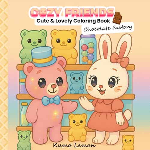 Cozy Friends: Chocolate Factory Adventure – Cute Kawaii Coloring Book for Kids & Adults: A Sweet and Whimsical Coloring Journey Filled with Candy Machines, Cute Animals, Magical Treats & Cozy Scenes