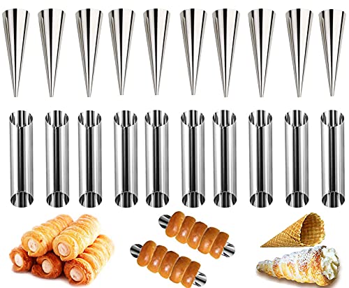 AiQInu Cannoli formar, 10 st rostfritt stål koner för croissanter formar konditori grädde Horn tårta tårta form - cannoli form rör, grädde rulle form, cannoli, croissanter, löv, gelat