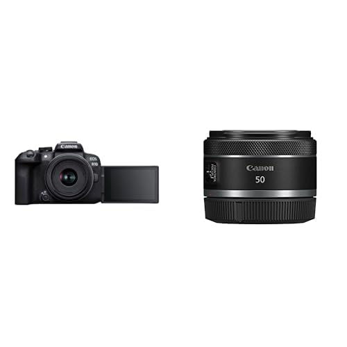 Canon 5331C010 Spegelfri kamera, Svart, 45 x 30 x 20 cm & Canon RF 50 mm F1.8 STM-objektiv | kompakt och lätt, hög ljusintensitet på 1:1,8, kompatibel med alla Canon-kameror i EOS R-serien svart