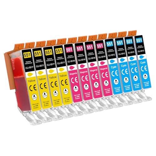 Jhaan 551 XL kompatibel med Canon CLI-551 XL bläckpatroner för Canon Pixma MX925, IP7250, MG5650, MX725, MG6450, IX6850, MX920, MG550, IP7200, MG6650, MG5450 (12-pack)
