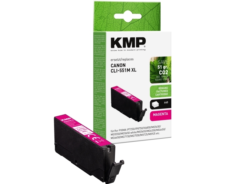 Kmp Canon Cli551mxl (6445B001), Magenta, 10,5 Ml, 1 Styck, 650 Sidor, Enpack
