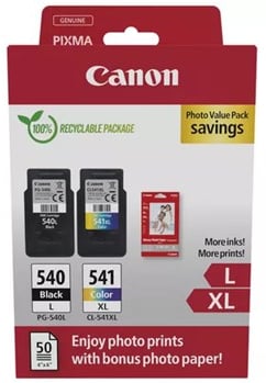 Canon PG-540L Black Twin & CL-541XL Colour Ink Cartridge Photo Paper Value Combo Pack - 5224B015