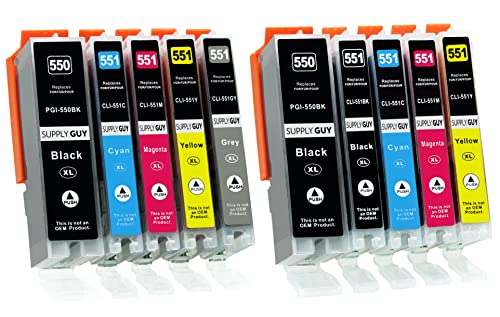 Supply Guy 10 bläckpatroner met chip kompatibel med Canon PGI-550 CLI-551 för Pixma IP8700 IP8750 MG6300 MG6350 MG7100 MG7150 MG7500 MG7550