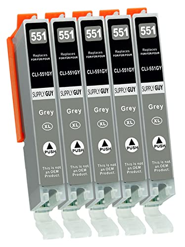 Supply Guy 5 bläckpatroner met chip kompatibel med Canon CLI-551 (Grå) för Pixma IP8700 IP8750 MG6300 MG6350 MG7100 MG7150 MG7500 MG7550