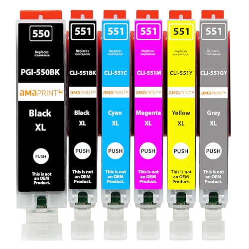 Amaprint 6 XL patroner kompatibla med Canon PGI 550 CLI 551 för Pixma IP8700 IP8750 MG6300 MG6350 MG7100 MG7150 MG7500 MG7550