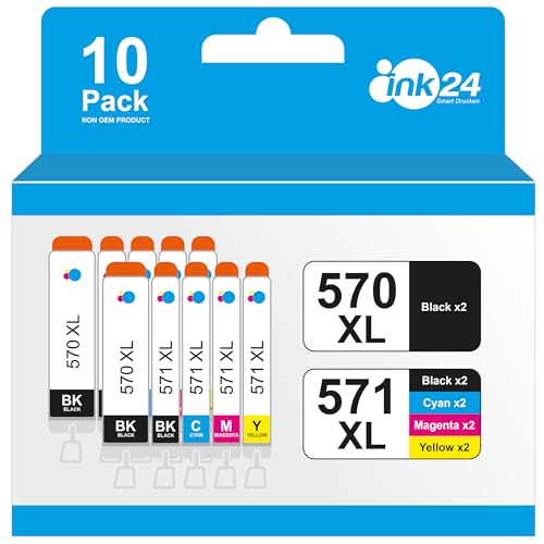 Kompatibla bläck24®-skrivarpatroner ersätter Canon PGI570 XL CLI571 XL med chip – kompatibel för Canon Pixma MG5750, MG5751, MG5752, MG5753, MG6850, MG6851, MG6852, MG6853 2 big Black, 2 small Black, 2 (C/M/Y) Sparset 3: 10er Pack (Bl/C/M/Y)