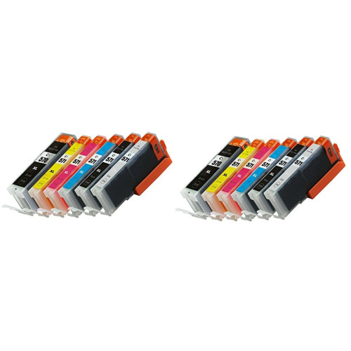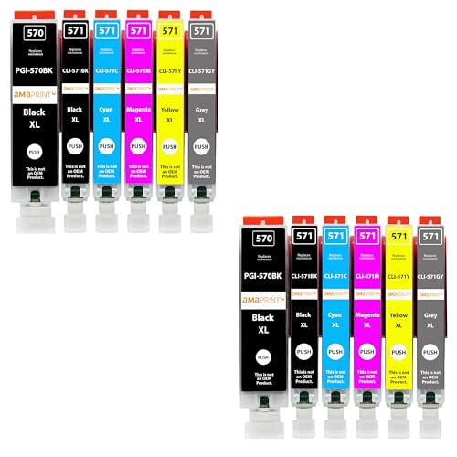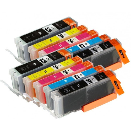 Canon Pixma PGI-570 / CLI-571 XL Set Dubbelt (12-pack) med Grå (BK/Bk/C/M/Y/GY). Kompatibla (ej Canon original) bläckpatroner. Fri frakt.