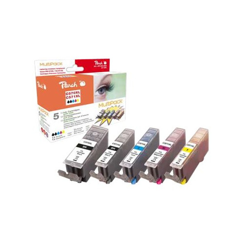 Peach Multi Pack XL - 5-pack - svart, gul, cyan, magenta - kompatibel - bläckpatron (alternativ för: Canon CLI-571BKXL, Canon CLI-571CXL, Canon CLI-571MXL, Canon CLI-571YXL, Canon PGI-570PGBKXL)